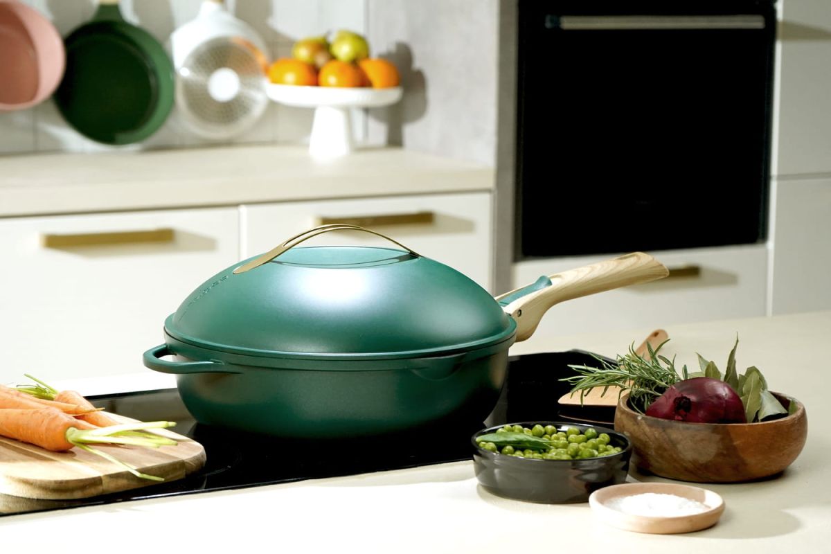 La FABULEUSE est la dernière innovation de Cookut, remplaçant jusqu'à huit ustensiles de cuisine : poêle, sauteuse, casserole, cocotte, cuit-vapeur, friteuse, plat allant au four et moule à gâteaux. Fabriquée en métal 100% recyclé, elle est antiadhésive sans PFOA et convient à tous les types de feux, y compris l'induction et le four. Deux poignées amovibles, une longue et une courte, facilitent son utilisation au quotidien.