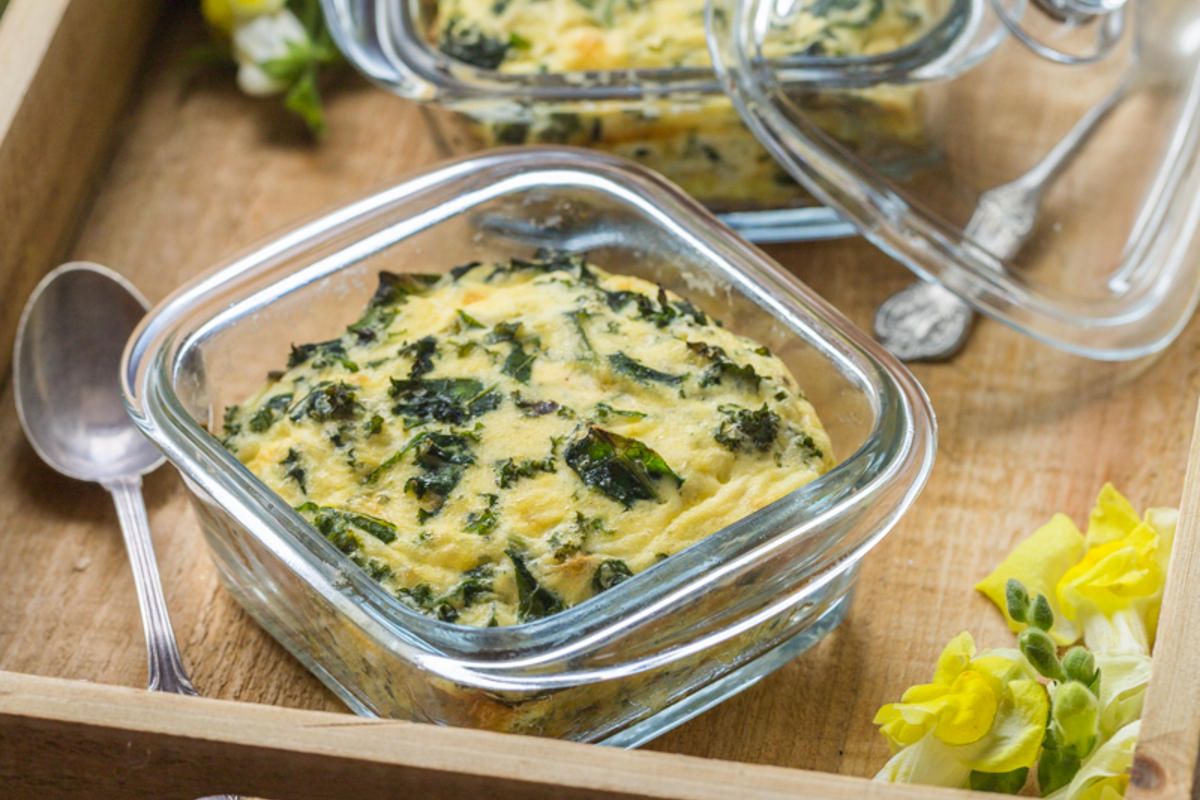 - Beurrez quatre ramequins, répartissez-y le mélange de chou, puis recouvrez de la préparation aux œufs. Enfournez pour 20 minutes.