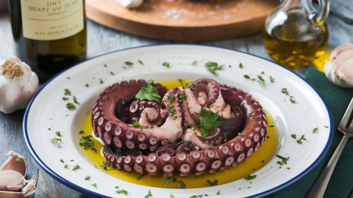 Pour accompagner ce mets, un vin blanc sec tel qu'un Chablis ou un Sancerre ajoutera une note de fraîcheur idéale pour équilibrer la richesse du poulpe.