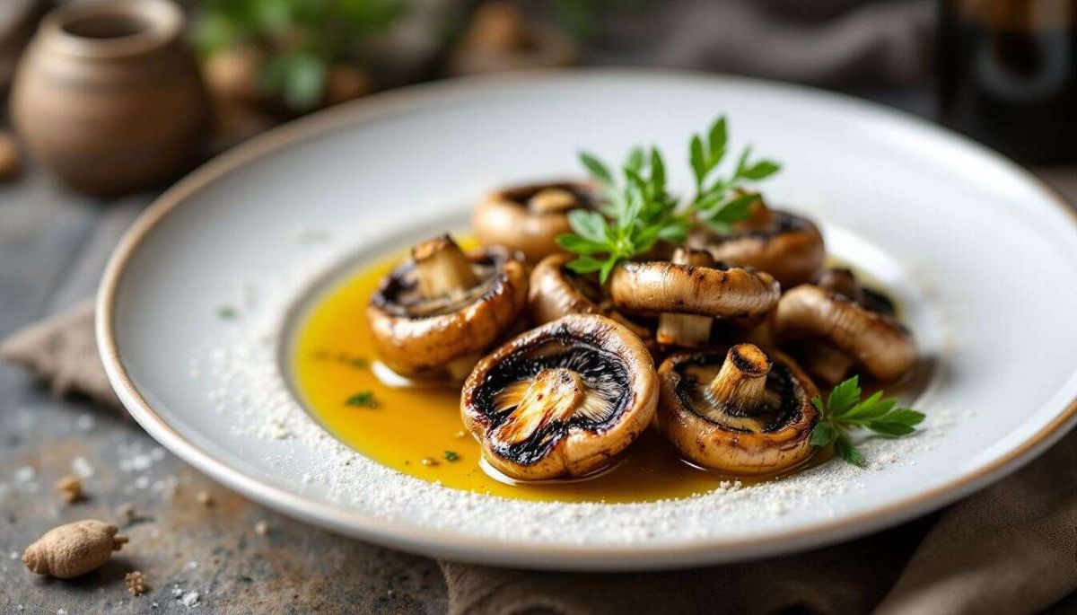 Servez vos champignons dans un plat en terre cuite, qui conservera leur chaleur tout au long du repas. Pour une présentation soignée, décorez avec quelques brins de persil frais haché.