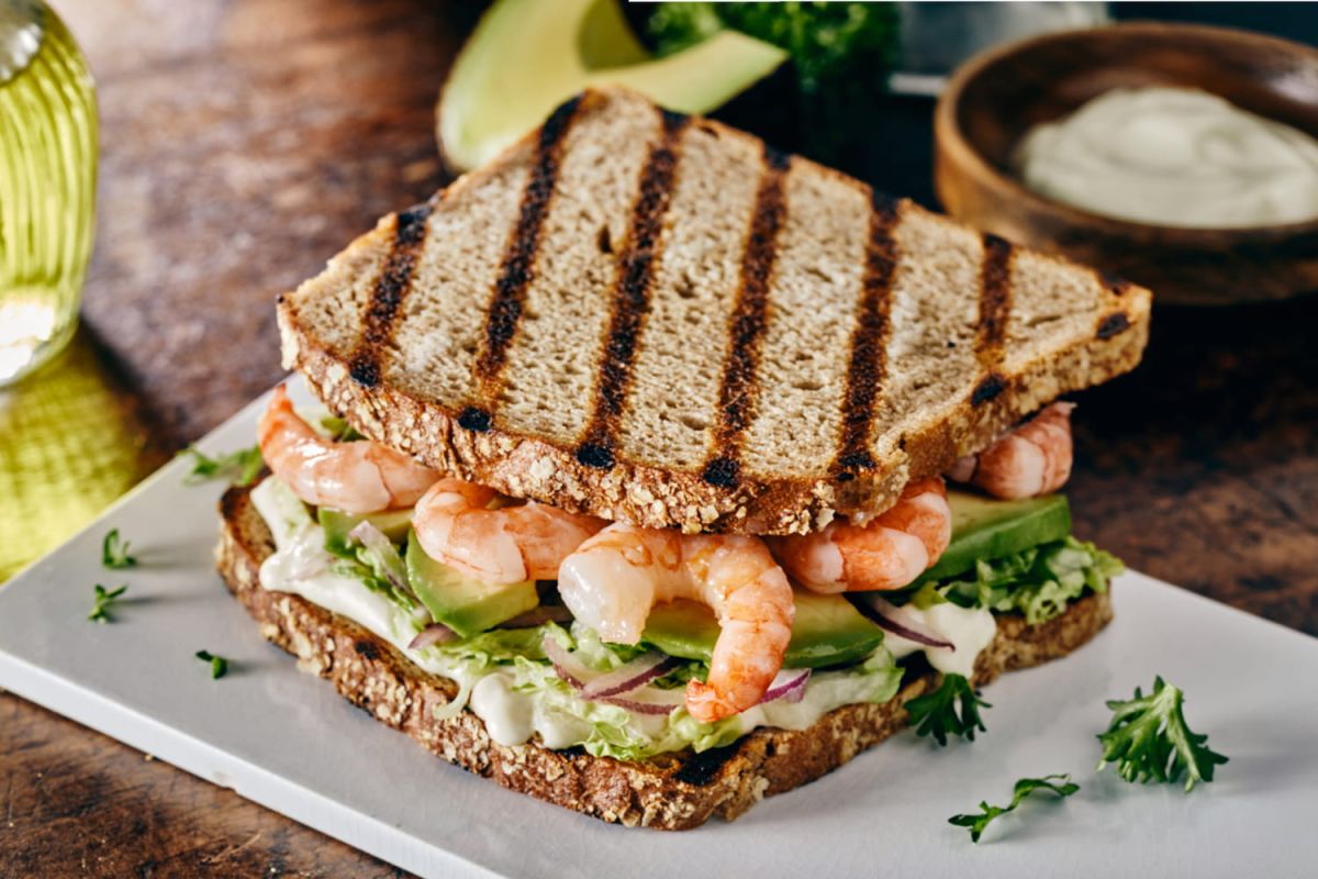 Préparation du sandwich crevettes-avocat