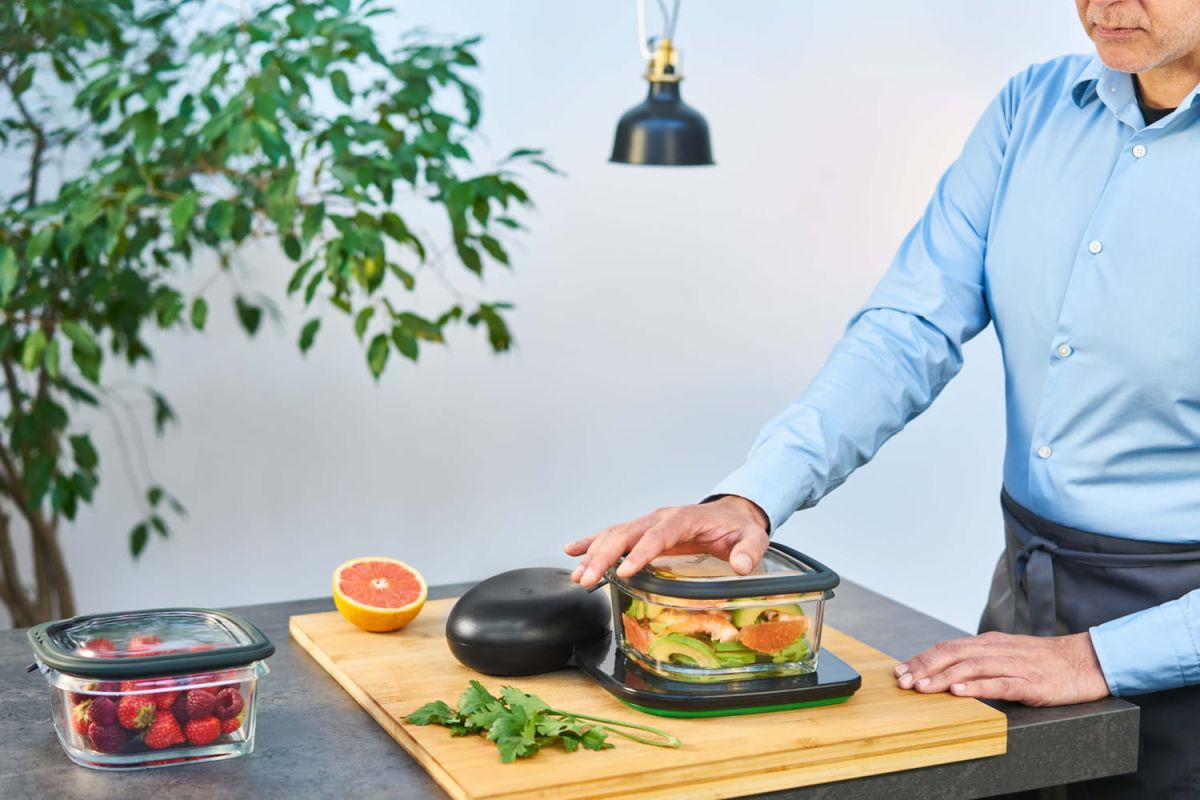 Biotyfood propose une machine sous-vide très performante (0,2 bar), adaptée aux besoins des consommateurs, qui offre trois niveaux de vide pour respecter la nature des aliments. La véritable innovation réside dans la collection de contenants en verre borosilicate qui l'accompagne. Ces récipients ne sont pas seulement conçus pour conserver, mais aussi pour préparer, cuire, congeler et déguster vos mets. L'utilisateur peut mettre sous-vide ses aliments en appuyant simplement sur le couvercle des boîtes, ce qui ne prend que 10 secondes, permettant ainsi une conservation jusqu'à cinq fois plus longue. Une application anti-gaspillage viendra également compléter cette offre, facilitant la gestion des temps de conservation.