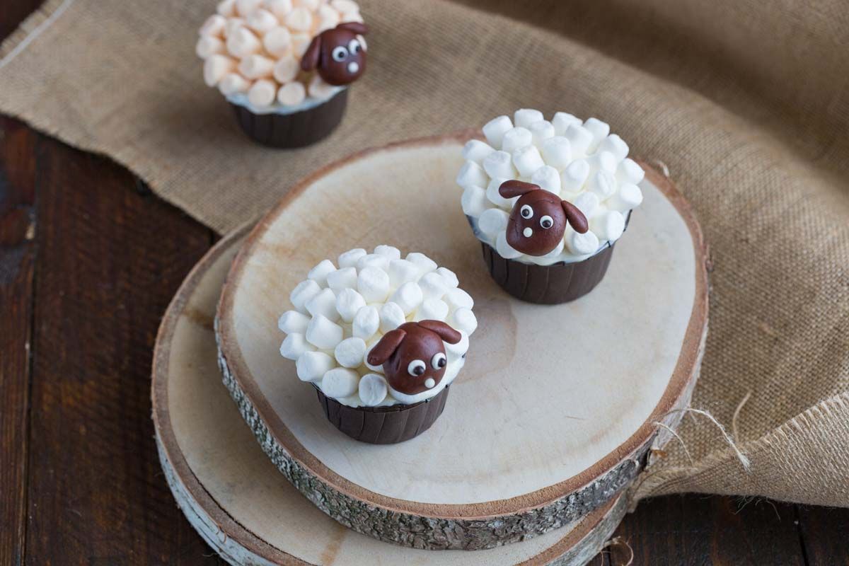 - Avec la pâte d'amande, formez la tête du mouton et fixez-la sur le cupcake à l'aide d'un cure-dent.