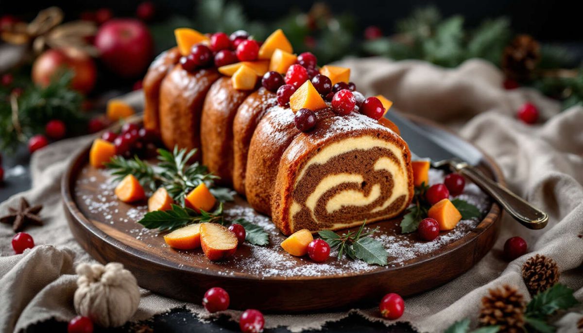 Pour un effet visuel impeccable, servez votre bûche sur un plat long et recouvert de noix de coco râpée pour imiter la neige, avec des fruits exotiques disposés autour. Ajoutez une touche festive avec quelques feuilles de houx ou une décoration en sucre.