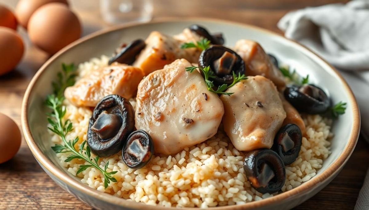 Inspirée de la riche cuisine asiatique, cette recette met en avant les champignons noirs, un ingrédient traditionnel des plats chinois. Ils apportent une texture croquante et une saveur délicate qui se marie parfaitement avec le poulet.