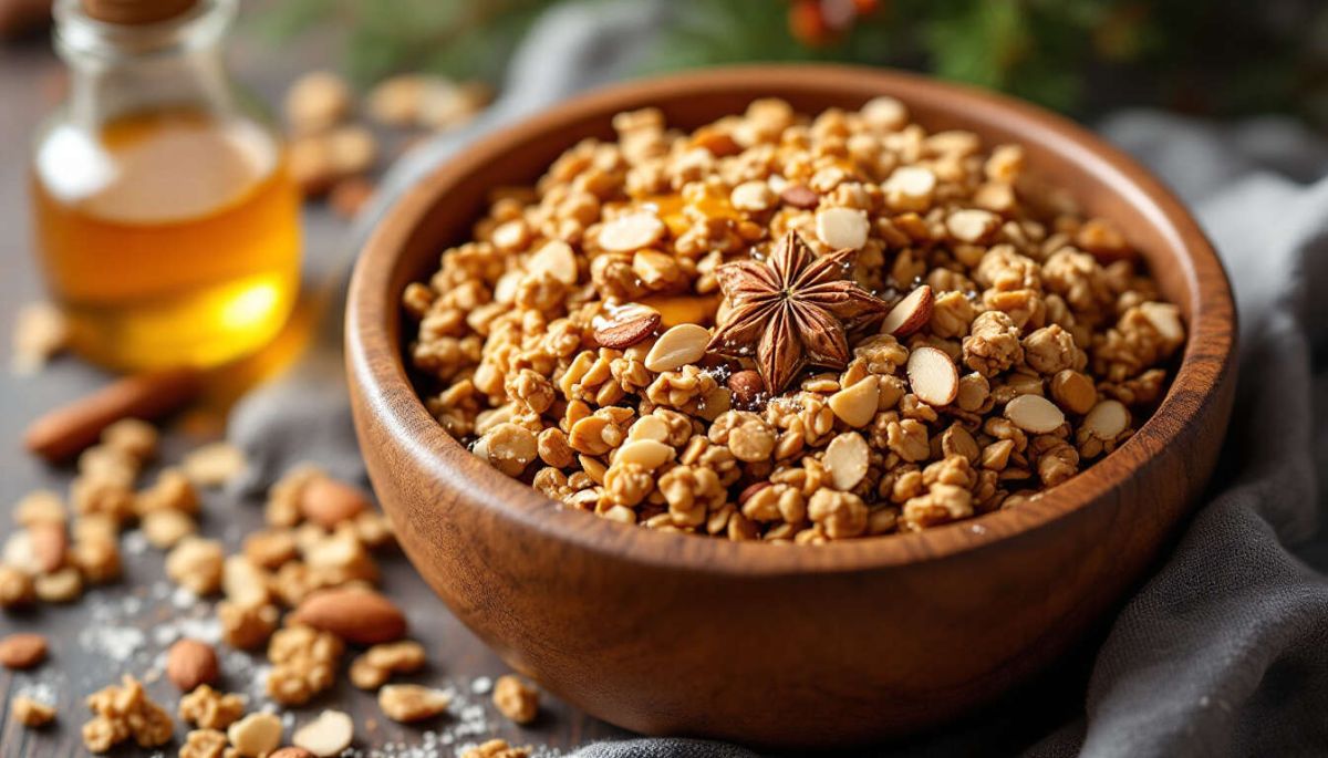 Éveillez vos sens avec notre granola de sarrasin aux épices de Noël. Ce mélange croustillant, simple à réaliser, apportera une ambiance festive à votre petit-déjeuner ou à vos goûters. N'hésitez pas à le personnaliser en ajoutant vos fruits secs ou autres épices favorites.