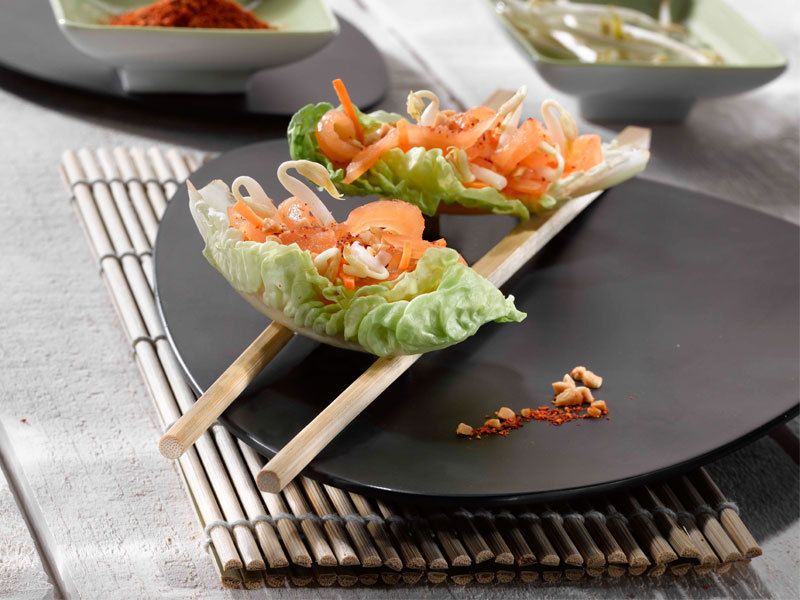 Pour une touche d’élégance, optez pour des rouleaux de saumon garnis de Saint-Jacques et de légumes croquants. Enroulez le tout dans une feuille de nori pour un plat qui allie sophistication et légèreté.