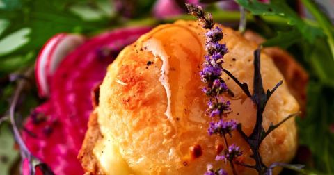 Versez le mélange œufs-crème sur la garniture de champignons et de chèvre.
