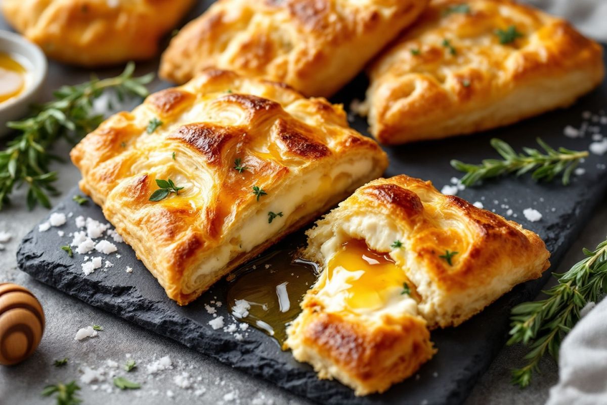 Ces feuilletés s'associent admirablement bien avec d'autres plats. Une salade de pommes et roquette apporte une note acidulée, tandis qu'un chutney de figues ou d'oignons se marie harmonieusement avec le miel. Pour les boissons, un vin blanc sec du Val de Loire ou un rosé bien frais seront des compagnons idéaux.